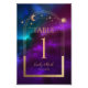 Números de Mesa de Casamento da Lua Solar Dourada de Teal Roxo Cósmico Apresenta um sol, lua e estrelas com uma estrutura dourada sobre um fundo cósmico roxo, teal e azul colorido. Dentro é a sua informação de convite de casamento. Personalize editando o texto nas caixas de texto. Projetado para você pelo Evco Studio www.zazzle.com/store/evcostudio NOTA: personalize com números de tabela um a um e adicione ao carrinho individualmente. Projetado para você pelo Evco Studio www.zazzle.com/store/evcostudio