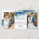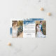 Conte à família e aos amigos a notícia excelente do seu casamento com este elegante Cartão de Anúncio Fotográfico "Casamos". Sinta-se livre para adicionar sua própria mensagem, a nossa é simplesmente um exemplo. Design simples e moderno de cartão de anúncio com cor azul de água e detalhes de caligrafia manuscritos. Traseira do cartão com mancha azul de aquarela graciosa e detalhes florais azuis que incluem noiva e nomes de cheio. Flores e folhagem em combinação de tonalidades azuis, azuis-marinho, brancas, cinzas e verdes.