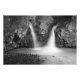 Foto preta e branca de uma pequena cascata. A foto foi tirada à noite, num parque, na cidade azórica de Ribeira Grande.