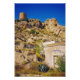 Ver até à torre redonda do Castelo de Castalla, na cidade de Castalla, província de Alicante, Comunidade Valenciana, Espanha