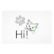 Oi, texto e desenhos de um rosto de gato com olhos verdes e uma pata. Saudações aos gatos. Wall art, impressões, posters, canvas para diversão e riso
