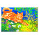 Impressão de fotografia com a pintura de animais de Louis Wain Cat Stalking (1860-1939). Um gato listrado de laranja anda num campo verde à noite. Flores brancas, roxas e vermelhas estão no primeiro plano. Um presente maravilhoso para amantes de gatos e arte inglesa.