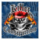 Esta design apresenta um crânio de trabalhador da construção civil vestindo seu chapéu de duro vermelho, com martelos flamejantes cruzados em frente a um fundo circular. Intitulado "Killer Construction", este maravilhoso produto é uma excelente escolha para construtores e empreiteiros também. Visite www.zazzle.com/contractorskull para ver os crânios temáticos do carpinteiro mais legal com suas ferramentas úteis.