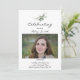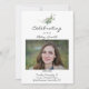 Celebração do funeral de fotos do convite à vida. Verde impermeável com fotografia. Simples convite para funeral com um tema botânico. A escrita e as fontes modernas são elegantes e limpas. Um sentimento sincero é genuíno e apropriado. Todos os campos de texto são personalizáveis se você quiser criar seu próprio sentimento ou manter o que foi fornecido para você. Personalize com suas informações e fotos para criar uma celebração da vida convidada com isso é clássico com um toque moderno. Você pode encontrar mais opções de memorial com este tema geral no Elegant Watercolor Leaf e Branch Memorial Collection na loja The Gathering Designs.