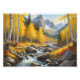 A pintura retrata uma cena digital. Um riacho que flui através de uma floresta exuberante no outono. A água cai sobre rochas lisas e arredondadas, criando uma cascata tranquila