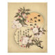 Cereja floresce contra o sol ou a lua. Impressão de japonês Vintage.