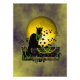 Uma silhueta do gato preto de Théophile Steinlen para o clube do Noir do Le Chat num cenário moderno para o Grás Mardi com uma lua amarela brilhante, muitas miçangas, e as palavras "Laissez les bon temps rouler", que significa "Deixem os bons tempos rolar."