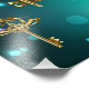 Chaves Douradas e antigas com engrenagens e marcadores penduram em correntes douradas sobre fundo verde luminoso.