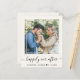 Simples e amigável com orçamento, convite para casamento de creme leve com a sua foto em um quadro quadrado recortado, "feliz para sempre" escrito em um roteiro chic com baloiços e seus primeiros nomes e data de casamento juntos por um coração na tipografia moderna. No verso, personalize seu convite em tipografia elegante e insira seu endereço no site do casamento para criar um código QR para seus convidados digitalizarem para RSVP on-line e para obter detalhes adicionais de casamento, como acomodações e instruções. Este papel semirbrilhante do orçamento é semelhante em peso ao papel fotográfico. Versões tradicionais de estoque de cartão mais pesado também estão disponíveis na coleção mostrada abaixo.