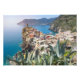 Impressão das casas coloridas da pequena cidade pesqueira Vernazza, uma das aldeias Cinque Terre, construída sobre uma rocha na costa mediterrânica da Ligúria, perto de La Spezia, na Itália.