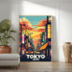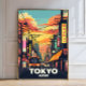 Entre no coração de Tóquio com esta vibrante paisagem urbana captando a energia e a beleza de uma robusta rua japonesa ao pôr do sol. O céu é pintado com matizes quentes, lançando um brilho surreal sobre sinais iluminados por neon, linhas elétricas e uma cena de rua viva com um ônibus laranja e uma placa japonesa icônica. Esta trabalho de arte combina lindamente elementos urbanos modernos com um sentimento nostálgico, quase cinemático, perfeito para quem adora o encanto único de Tóquio. Adicione esta peça à sua decoração para obter um salto de cor e um toque do espírito dinâmico de Tóquio.