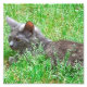 Este elemento mostra uma fotografia de um gato-torrado cinza que repousa na grama.