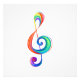 Chave musical desenhada a partir de camadas multicoloridas de cores do arco-íris sobre fundo branco.