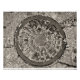 Fotografia em preto e branco de um cobrir de manhole da NYC. Tirada em SOHO.