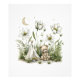 Crie uma atmosfera calma e sonhadora com esta adorável ilustração em aquarela de um coelhinho fofo sentado entre grama macia e flores silvestres sob uma lua suave e estrelas cintilantes. Projetado em uma paleta de cores neutras e suaves com um charme de livro de histórias, esta impressão é perfeita para o berçário de um bebê, quarto de crianças ou como um presente atencioso para chá de bebê.