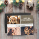 Cartão de íman de colagem de fotos de feriado moderno com três fotos. Adicione três das suas fotos de feriado favoritas ao cartão. O feliz texto de Natal está na moda e na moderna fonte branca em um fundo de cinza. Personalize com seu nome. O cartão é excelente para um solteiro jovem que gostaria de desejar férias de feliz aos seus amigos e familiares.