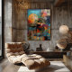 Este collage abstracto destaca un sol radiante combinado con diversas texturas y patrones en colores vibrantes. Ideal para los amantes del arte contemporáneo, este póster aportará una atmósfera cálida y dinámica a cualquier espacio. Perfecto para decorar hogares y oficinas con un toque moderno y artístico