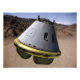 Conceito de um veículo de exploração de tripulações à medida que aterrisa na Terra em destaque com chegada.