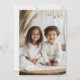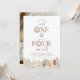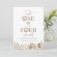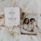 Um modelo de convite de aniversário conjunto para 1º e 4º aniversário com rostos de leão em aquarela e folhas de safari em tons neutros ao longo da parte inferior. Você pode adicionar sua própria foto ao verso. Perfeito para a sua festa de aniversário com tema safari 'Wild One' e 'Four Ever Wild'!