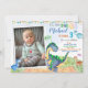 Foto Convite de aniversário do Dinossauro Pequeno convite para dino, festa de dino-mite. Stomp Chomp Growth e Rawr! Este belo convite para qualquer festa de aniversário etária com vários dinossauros ruidosos, balões e banner de festas no topo. Basta editar este modelo fácil de usar no menu Personalização para torná-lo especial.