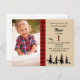 Um convite de festas temático de lenhador para a primeira festa de aniversário de um menino. Insira sua foto do aniversariante! Modelos para detalhes de nome e festa. Padrão de flanela de xadrez vermelha e preta, silhuetas de floresta e fauna selvagem em preto. Árvores, alce, coelho, raposa e águia. Leve, fundo bege. O número 1 ano em padrão de xadrez.