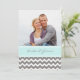 Cartões com fotos personalizados de convite de casamento em cinzas de carvão elegantes e contemporâneas, padrão moderno de zigzags de géron azul-turquesa claro e branco. Personalize esses convites com seus detalhes de casamento e sua própria foto. Disponível em produtos correspondentes para todas as suas necessidades de casamento.