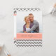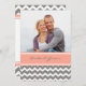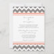 cartões com fotos personalizados de convite de casamento em cinzas de carvão elegantes e contemporâneas, cor-de-pêssego, cor-de-rosa e branco, e padrão de riscas de chevron casual. Personalize esses convites com seus detalhes de casamento e sua própria foto. Disponível em produtos correspondentes para todas as suas necessidades de casamento.