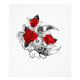 Contorno, lua da crista mecânica com engrenagens, decorada com rosas vermelhas com caules e folhas pretas em fundo branco. Steampunk
