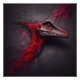 É um trabalho de arte captivador retratando a cabeça fossilizada de um dinossauro. Esta obra-prima abstrato cria um efeito 3D em tons vermelhos e carvões, à medida que a antiga criatura emerge da pedra escura. Explore a interseção intrigante da história e da arte nesta imagem vívida.