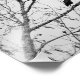 Foto em preto e branco de um pássaro preto empoleirado em um galho de uma árvore. Os galhos das árvores têm sementes balançando deles. Os ramos e as vagens de sementes criam um fundo abstrato em volta do pequeno animal negro. Fotografia Copyright ©Kimberly J Tilley.