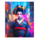 Cyber Geisha, Uma Fusão da Tradição e da Impressão de Fotografia Tecnológica. Descubra a mistura encantadora de tradição e tecnologia nesta impressionante obra de arte digital. Esta poster única apresenta uma bela gueixa adornada com elementos ciberpunk, reproduzida numa mistura cativante de aquarelas e estilos ukyo-e. A fusão da elegância do mundo antigo e da estética futurista cria uma experiência visual verdadeiramente mesmerizante.