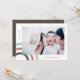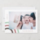 Cartão de feriado mínimo e feliz contém um arco-íris cor-de-rosa e marrom e um texto simples de Feliz com nome e foto.