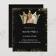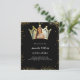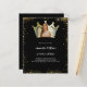 Um fundo preto, decorado com uma falso brilho dourado. Personalize e adicione um nome e detalhes da parte. Adicione uma foto ao quadro em forma de coroa. 1 folha = 1 convite impresso de borda a borda.