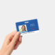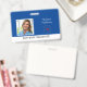 Crachá de Nome de Foto em Fundo Azul e Branco. Logo.
