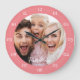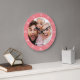 Crie um relógio especial, tipo redondo ou quadrado. O design de relógio personalizado apresenta fontes modernas simples sobrepostas à foto da família de sangramento do seu cheio. Um relógio personalizado é uma ideia única de presente de Natal para avós, novos pais ou um presente divertido para recém-casados decorando juntos sua primeira casa.