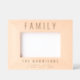 Uma estrutura moderna de madeira gravada a laser para mostrar sua foto familiar com "FAMÍLIA", seu sobrenome e nomes próprios em uma simples tipografia.