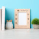 Um quadro de madeira de laser gravado personalizado para mostrar sua foto de feriado da família favorita no Natal com ilustrações de Papais noeis voando no seu trenó com renas, uma árvore de Natal, presentes e arcos, canas doces e um chapéu de Papai Noel. Personalize com seu sobrenome e outra linha de texto em uma simples tipografia moderna.