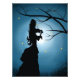 Uma silhueta de uma dama com longos cabelos ondulantes e um longo vestido vitoriano com cauda, tocando um violino. Ela toca contra um céu noturno, ao fundo uma árvore invernal nua e a lua brilhando intensamente. Dançando ao seu redor estão vagalumes ou talvez sejam fadas.
