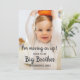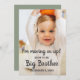 Anuncie sua gravidez à família e aos amigos com a foto do novo irmão ou irmã mais velha e que diz: "Estou indo em frente! Brevemente, irmão mais velho" e dá a data certa. Adicione sua própria foto e texto. Isso poderia ser personalizado para a nova irmã mais velha também. A parte de trás deste cartão é verde estável. Entre em contato conosco para obter ajuda com a personalização ou para solicitar produtos correspondentes.