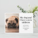 Com uma foto do seu cachorro especial, este cartão de anúncio de mudança de casa moderno e divertido pode ser personalizado com o seu novo endereço e detalhes de contato. Criado por Thisisnotme©