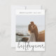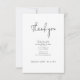 Um cartões de agradecimentos de casamento fotográfico com tipografia química e sua nota especial no verso