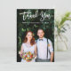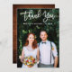 Cartões de agradecimentos Fotográfico de Casamento com Script de Pincel Moderno - Script Branco, Madeira Rústica, Volta