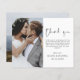 Casamento de Orçamento Obrigado Cartões que têm uma foto na frente e atrás. Os cartões de agradecimento contêm uma tipografia cursiva moderna, escrita com letra de mão, que é elegante, simples e moderna para usar após a celebração do dia do casamento.