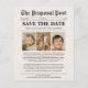 Este Jornal de Casamento Engraçado do Orçamento Salve o Folheto de Data é uma mistura perfeita de encanto e acessibilidade. Com sua design divertida inspirada em jornais antigos, este folheto adiciona um toque de capricho aos seus anúncios de casamento sem quebrar o banco. Apresentando manchetes e gráficos criativos, é certo que trará um sorriso aos rostos dos seus convidados. Personalize-o com seus detalhes de casamento e deixe que seus entes queridos saibam salvar a data para uma celebração cheia de risos e alegria. Prepare-se para fazer uma impressão memorável com esta diversão e orçamento, salve o folheto de data!