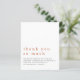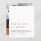 Foto de casamento recém-casada Código QR Terracotta Obrigado. Um alternativo MENOR de 4,5" x 5,6", compatível com o orçamento. Disponível em um STOCK de PLACA SEMI GLOSS 110 lb ou um STOCK de PAPEL THINNER SATIN FINISH 80 lb. Os envelopes são um extra opcional. Estilo informal. O cabeçalho é grande em na moda lowercase em terracotta com os detalhes abaixo. Muito espaço branco no topo para uma sensação contemporânea! Personalize facilmente o texto para os seus próprios detalhes e substitua a foto de amostra no verso por sua própria foto, que mudará automaticamente para preto e branco. Se desejar remover os filtros preto e branco, clique em personalizar mais e escolha a opção de filtro e selecione Sem filtro. Substitua o exemplo de código QR no verso com o seu próprio direcionamento para a galeria de fotos online. O plano de fundo do terracotta no verso pode ser alterado para outra cor se você quiser através da opção Personalizar mais.