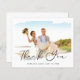 Este é um cartões de agradecimentos de casamento, moderno e na moda, favorável ao orçamento, usando uma elegante letra manuscrita, impressa em uma folha de papel. Altere facilmente as cores, o texto e a foto. O lado inverso inclui uma mensagem de obrigado que você pode personalizar ou remover completamente se preferir escrever a sua nota de agradecimento. Entre em contato com o designer para obter informações relacionadas a este design.