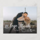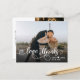 Budget Modern Hand Lettered Wedding "Love and Obrigados" Calliografia Script Foto de Obrigado Cartões. Modelo de cartões de agradecimentos de casamento moderno, com cheio horizontal na frente, com texto sobreposto "Amor e Obrigados" em letra de tipografia escrita à mão robusta, com traços em branco na fotografia. Adicione seus nomes personalizados e sua mensagem de obrigado. Se preferir escrever manualmente a sua nota, basta eliminar o texto de amostra para obter mais espaço. Cartões bonito, elegantes e baratos. Se precisar de ajuda, entre em contato com o designer!