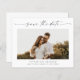 Uma foto elegante de script salva a data com foto horizontal e texto mínimo. Clique no botão personalizar para personalizar este design.