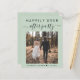 Elemento verde de sábio, ou anúncio de casamento privado e convite de recepção. A frente apresenta sua foto e "Feliz Festa Depois" em uma mistura de simples tipografia e roteiros de tendências. No verso, personalize sua mensagem com mais detalhes e adicione detalhes de festa ou recepção e seus nomes em um script semelhante a assinatura. Este papel semirbrilhante do orçamento é semelhante em peso ao papel fotográfico. Também está disponível uma versão maior do estoque de cartão tradicional 5x7 (mensagem para o link).