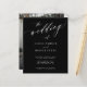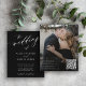 Convite de casamento de fotos do Elegante Trendy BUDGET com "o casamento de" texto branco e fundo preto com um script de caligrafia e seu CÓDIGO QR (gerado automaticamente). Personalize-o com sua foto de noivado no verso e seu texto. +++++++++ Este convite de casamento é adequado para cerimônias e recepções formais de casamento no estilo moderno. +++++++++++++++++++++++++++++++++, LEIA-O ANTES DE COMPRAR! Este é um cartão de casamento de barato orçamentário impresso em uma folha de papel (cada folha tem um cartão). +++ Para obter a melhor qualidade de preço, nosso conselho é escolher o tipo de papel Semi-Gloss (é espesso o suficiente para ser usado para papelaria) +++ Se você precisar de envelopes, escolha a OPÇÃO ENVELOPE. ++ Verifique duas vezes todas as informações e a ortografia do seu texto porque você receberá exatamente o que você vê - ninguém mais verificará nada antes de imprimir. +++ Esta placa foi projetada para o tamanho de 4,5" x 5,6". Caso você escolha outro tamanho do cartão e o texto saia da página, tudo precisa ser corrigido antes de adicionar o produto ao carrinho. Peça ajuda ao Serviço de Design ao Vivo.